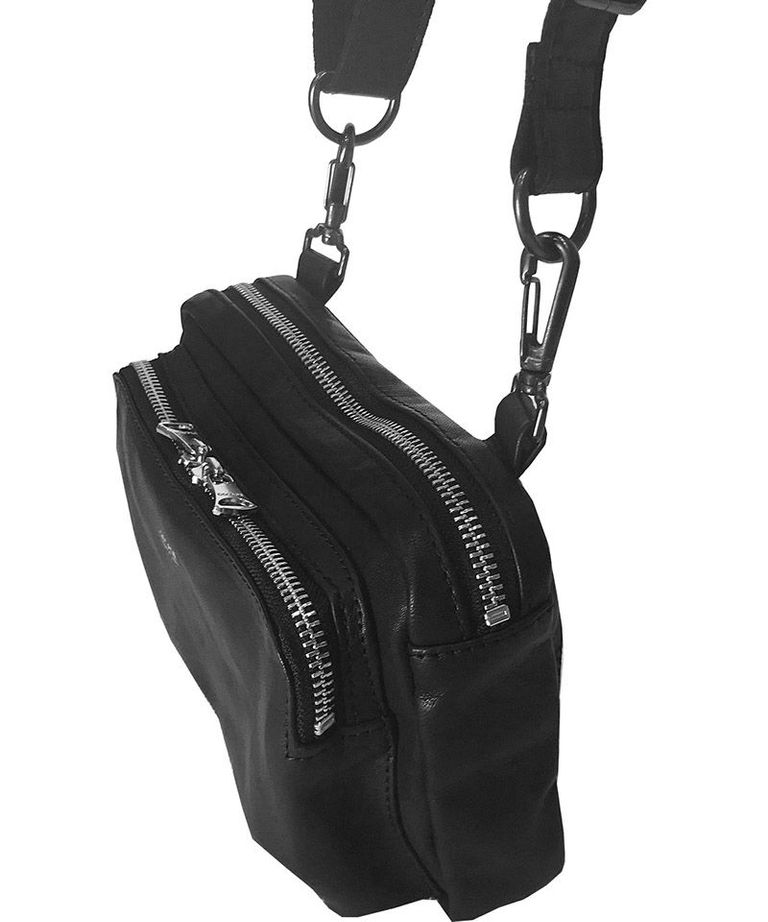 オイルドカウレザー・ミニショルダーポーチバッグ / Oiled Cow Leather Mini Shoulder Bag BLACK