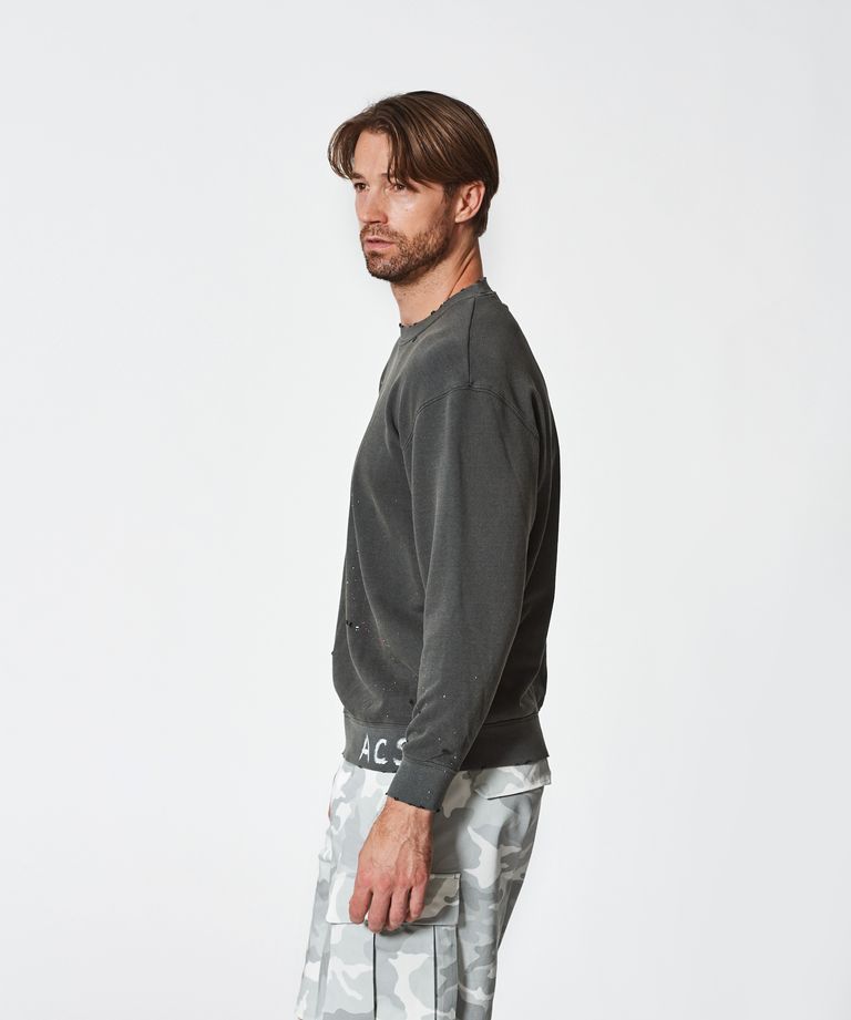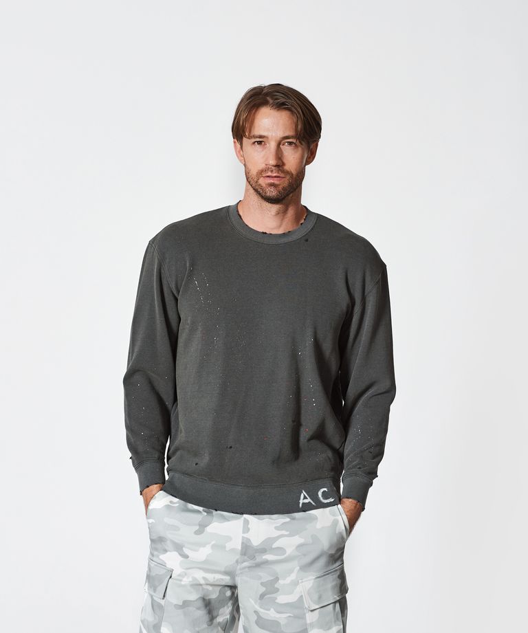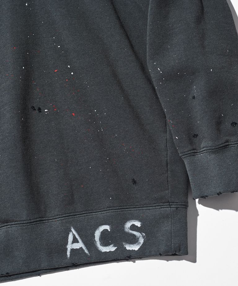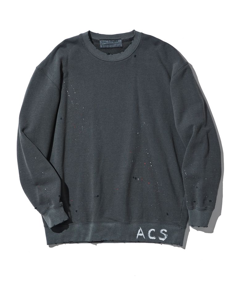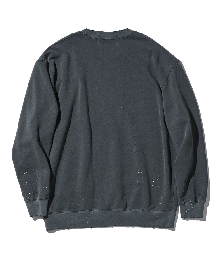 Damage Washed Hand Paint Logo Crewneck / プルオーバースウェット / BLACK【HJ2502】