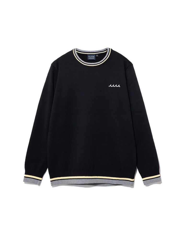 バイカラー クルーネックセーター / アンカースマイルコットンニット / ブラック [MMTK-446446]