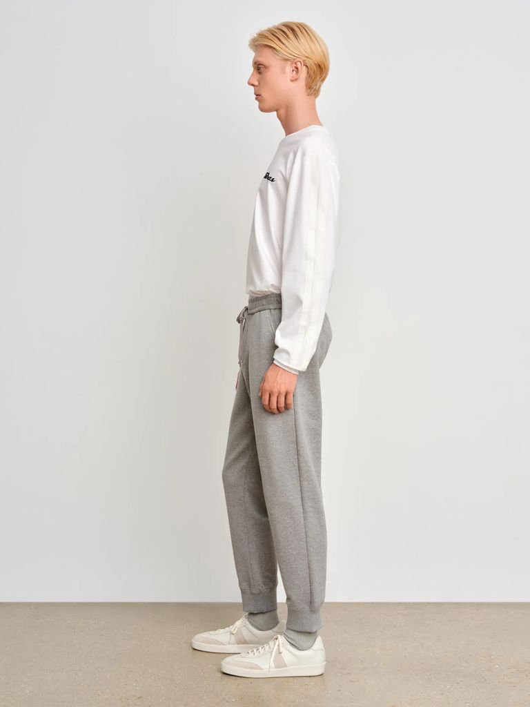 シルエットをややタイトにして、きれいめに着用できるよう仕上げたロングセラーのスウェットパンツ。