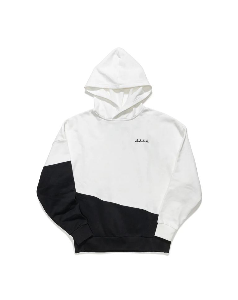 控えめなロゴと大胆なカラーブロックが目を惹くオーバーサイズのスウェットパーカー。
