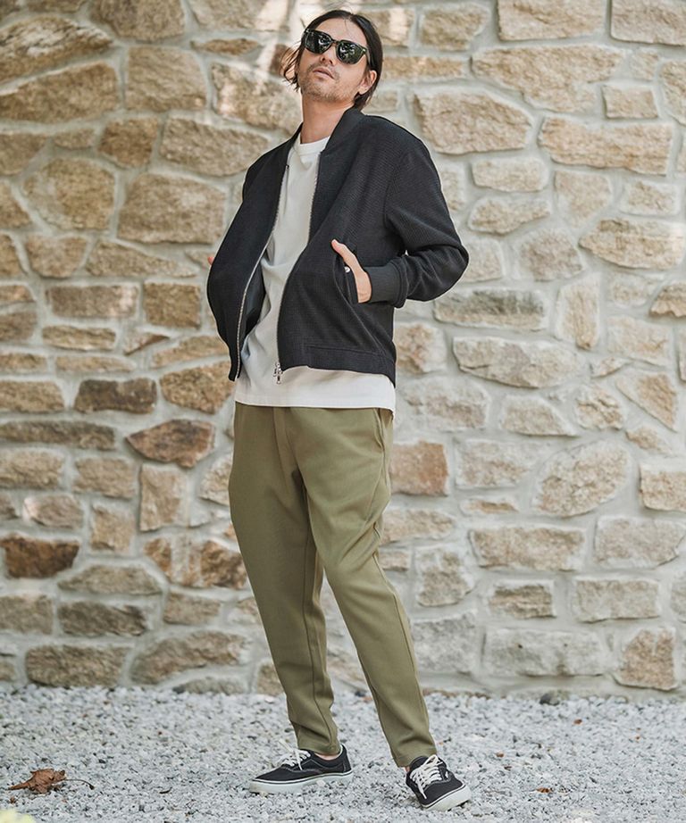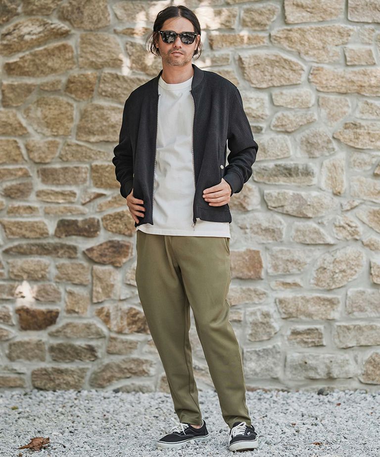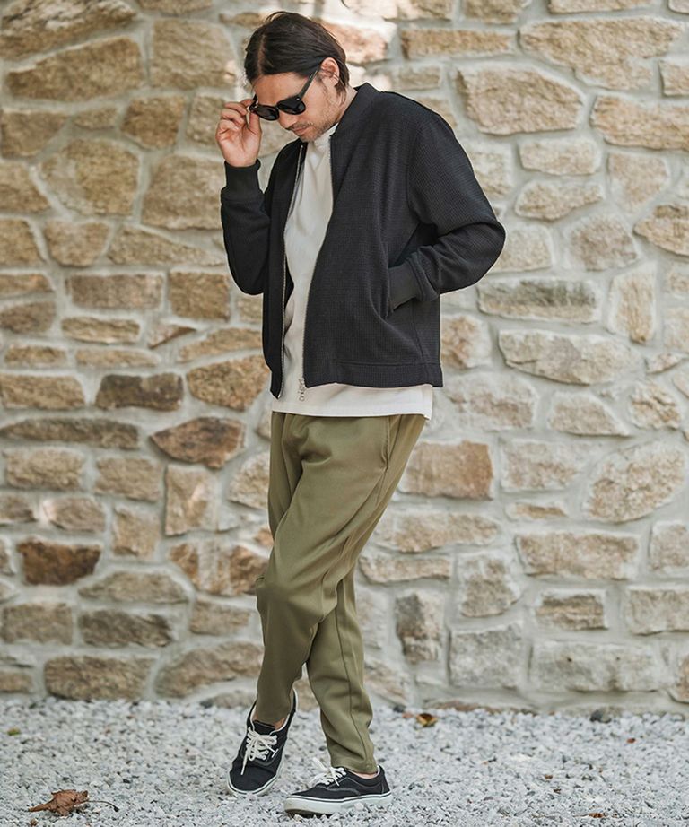 身幅もコンパクトに仕上げており、着丈もすっきりしているブルゾンなので様々なボトムスと着回しを楽しめます。