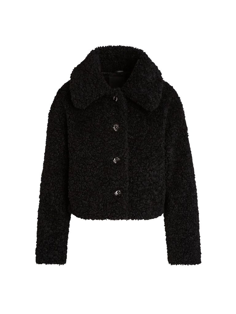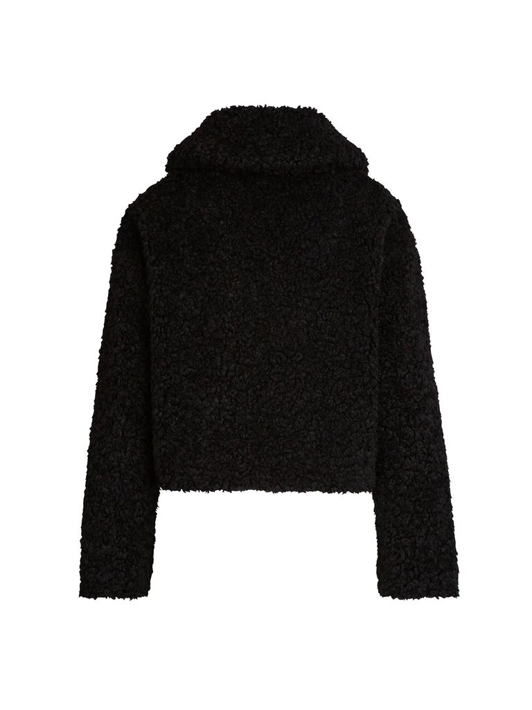 ウールのようなあたたかみのある質感が特徴的な、シープ調ボアを使用しているブルゾン。