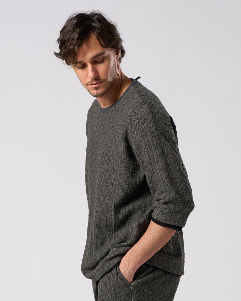 ☆先行予約☆ ジャガードサマーニット ハーフスリーブ / jacquard summer knit H/S / BLACK [7401 kc01i]