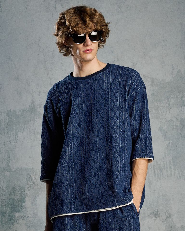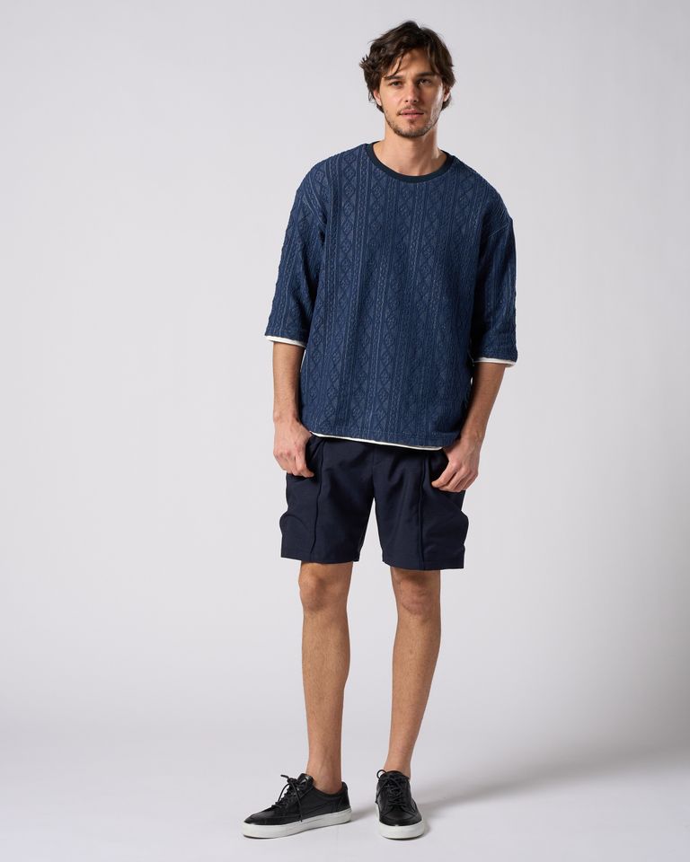 ☆先行予約☆ ジャガードサマーニット ハーフスリーブ / jacquard summer knit H/S / NAVY[7401 kc01i]