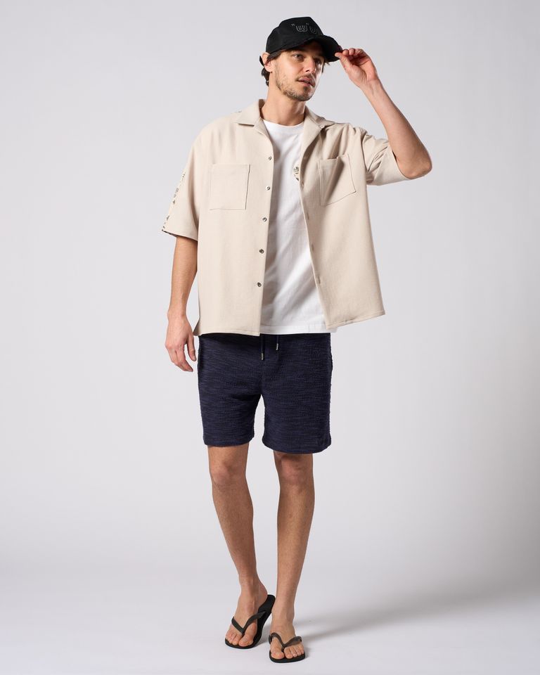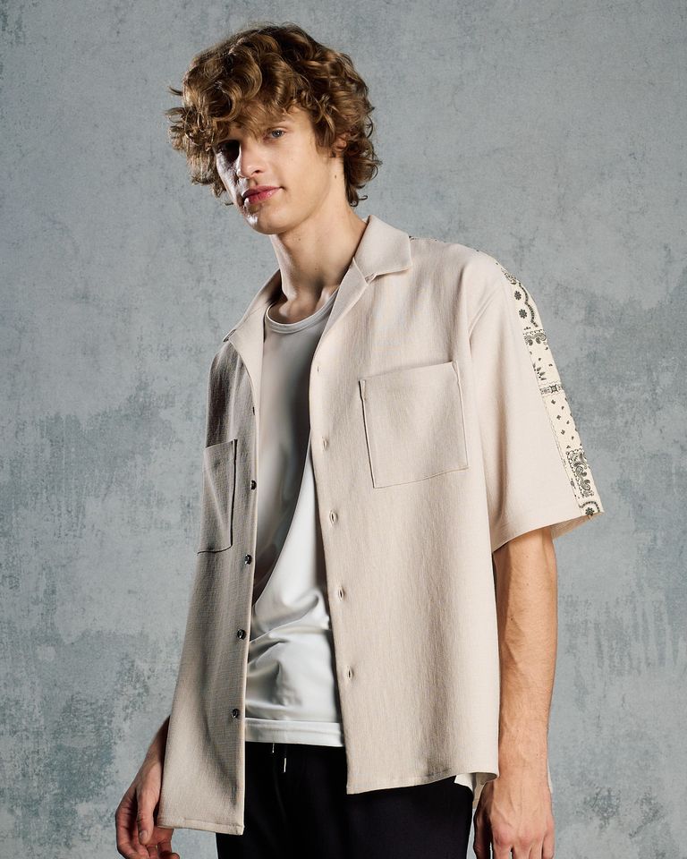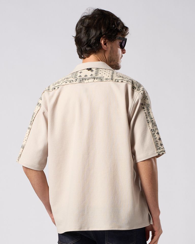 ☆先行予約☆ バンダナプリントパネルオープンカラーシャツ / bandana print panel open shirt / BEIGE [4401 pe48i]