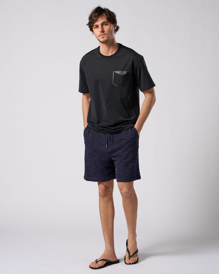 ☆先行予約☆ レザーポケット S/S Tシャツ / drawstring leather pocket S/S / BLACK [7132 ny58i]