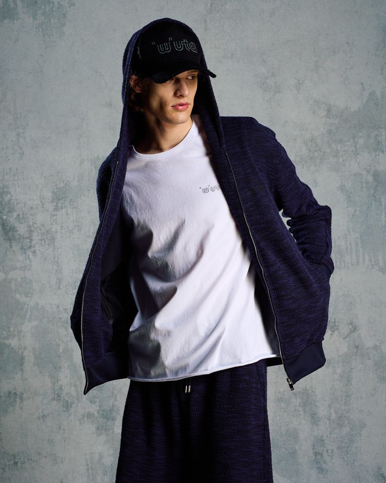 ☆先行予約☆ muta × wjk / ニットジャガード リラックス パーカー / knit jacquard relax parker / NAVY [204 mw02i]