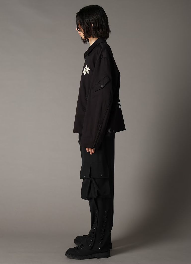 WHIPCORD LILY EMBROIDERED SOUVENIR JACKET / BLACK x BEIGE [GQ-J06-032-1]
