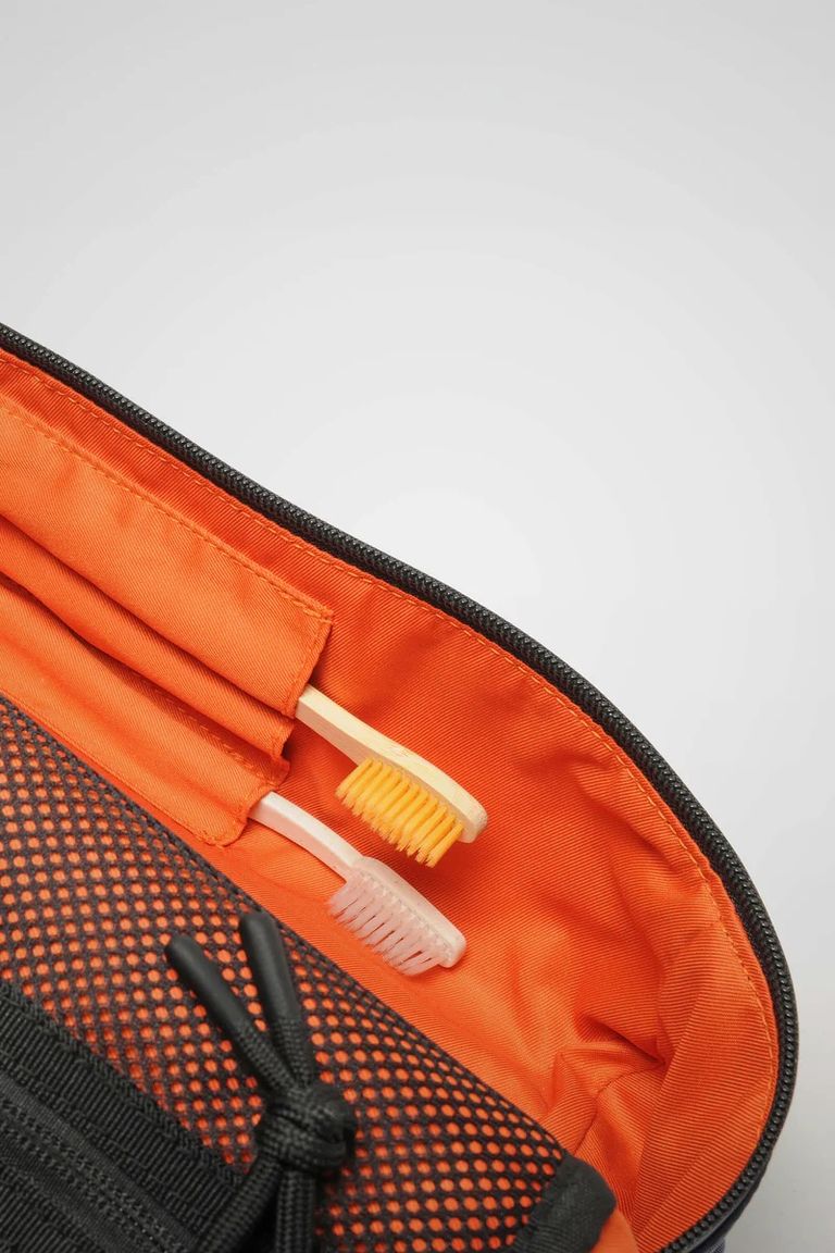 このトイレタリーバッグは、洗面用具や旅行の必需品を持ち運ぶのに最適です。出し入れしやすい広い開口部と、持ち運びに便利な上部フックを備えています。内側には、歯ブラシホルダー、隠しファスナー付きポケット、そして上部のメッシュポケットが付いています。