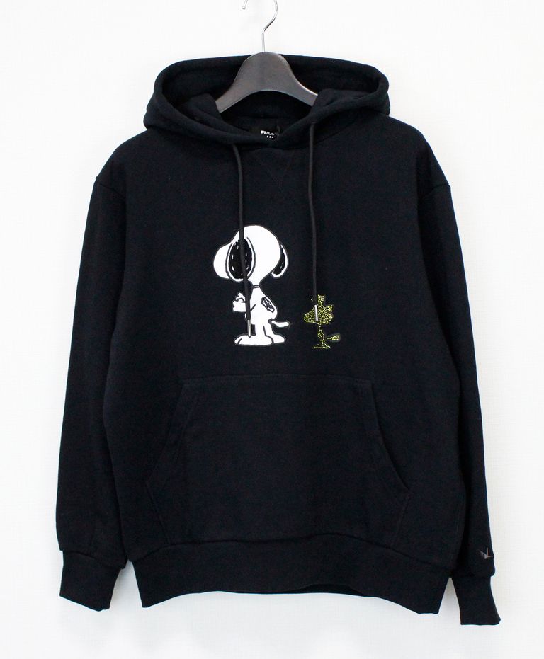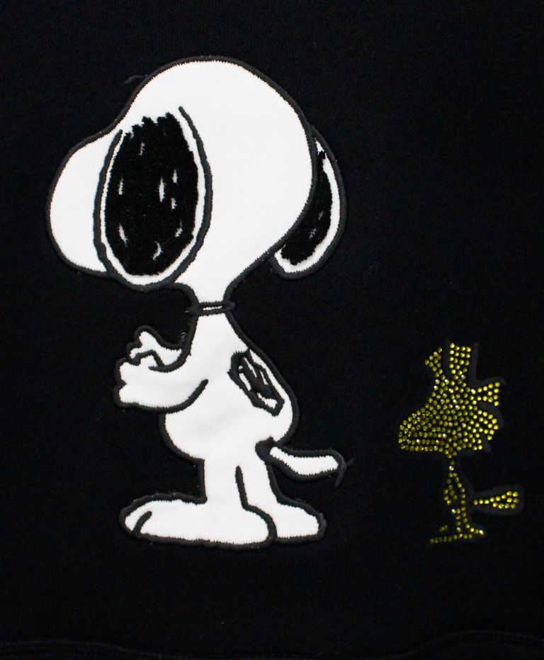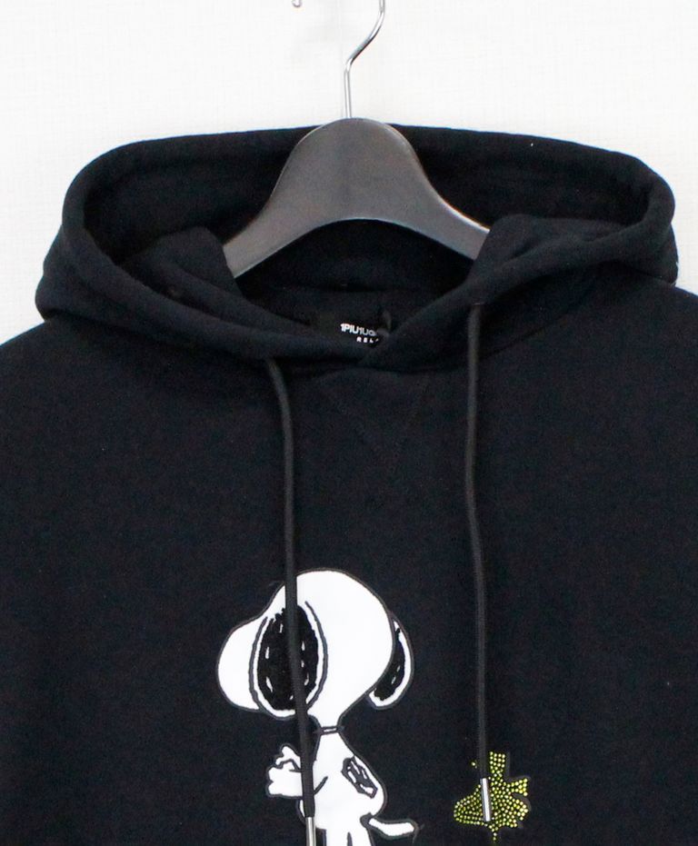 1PIU1UGUALE3 RELAX × PEANUTS / スヌーピー ラインストーンフーディー / パーカー / ブラック【USO-26055】