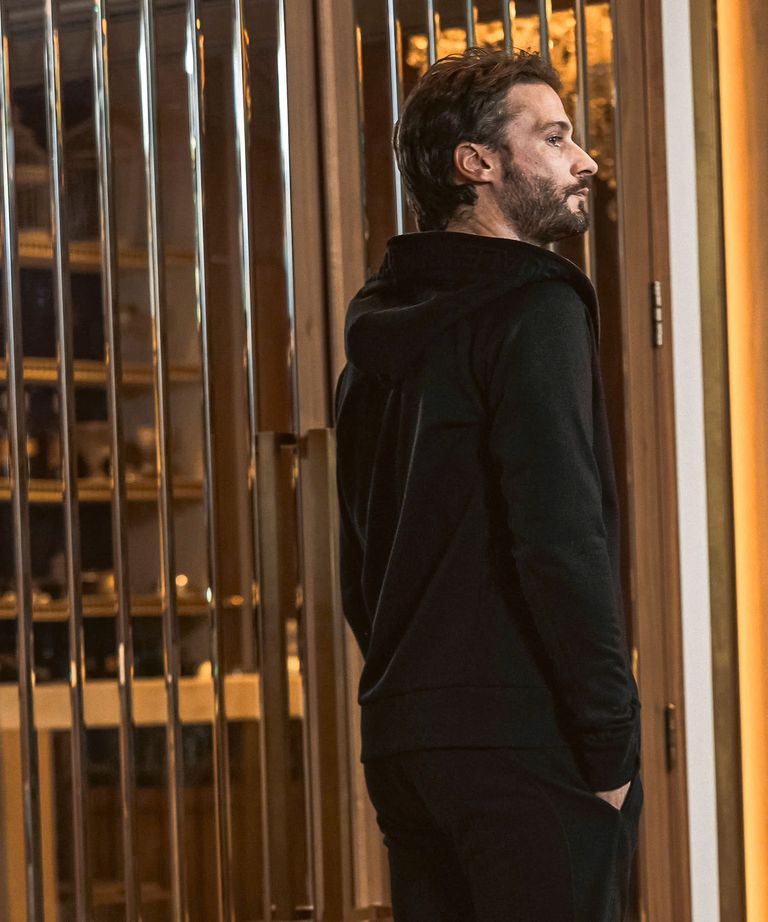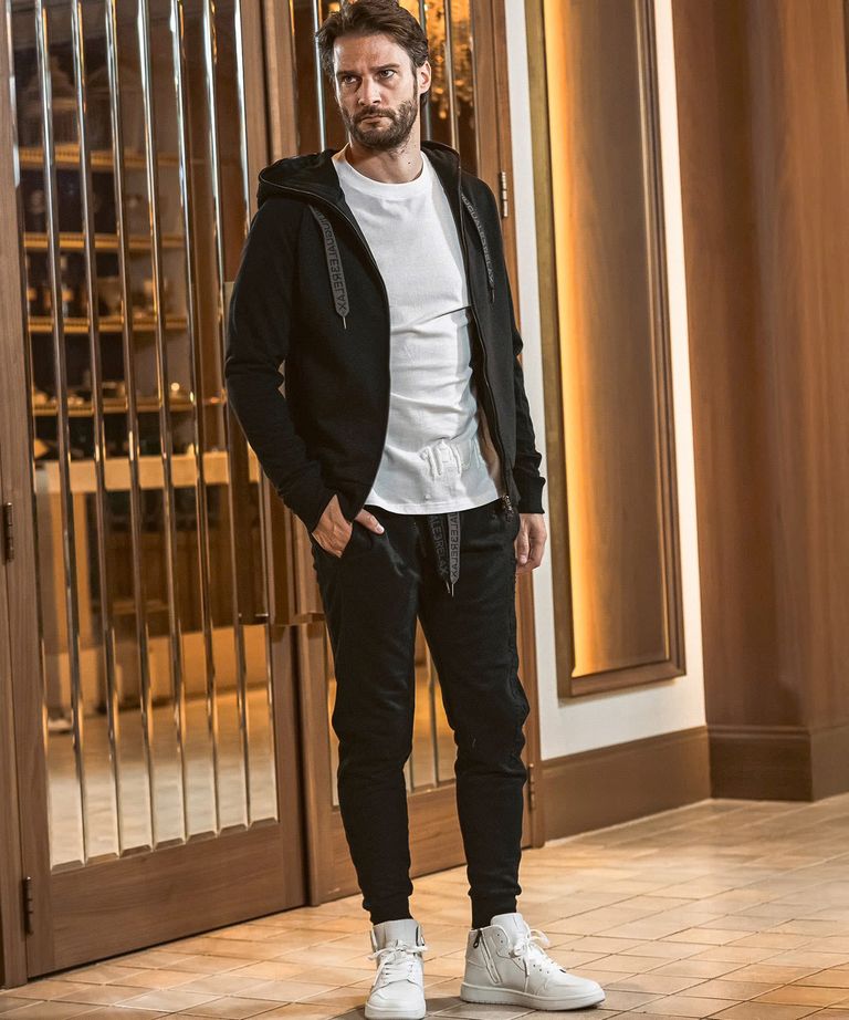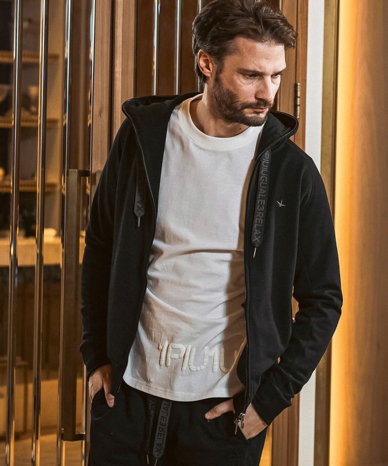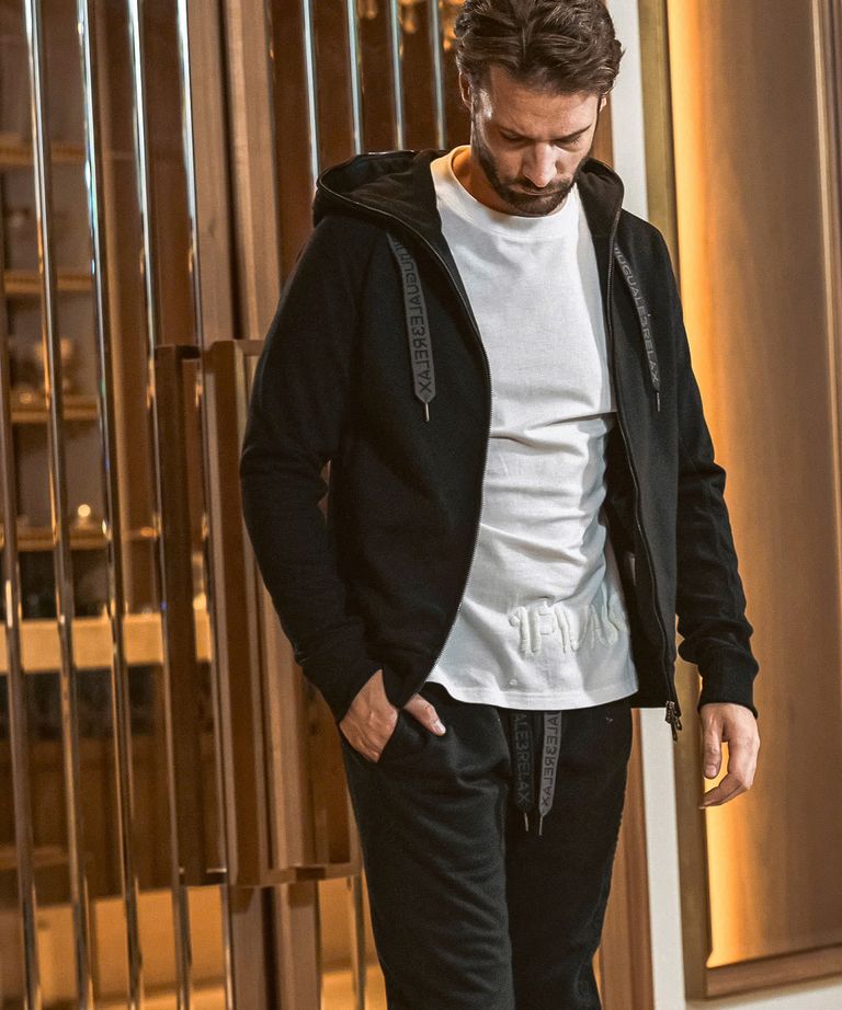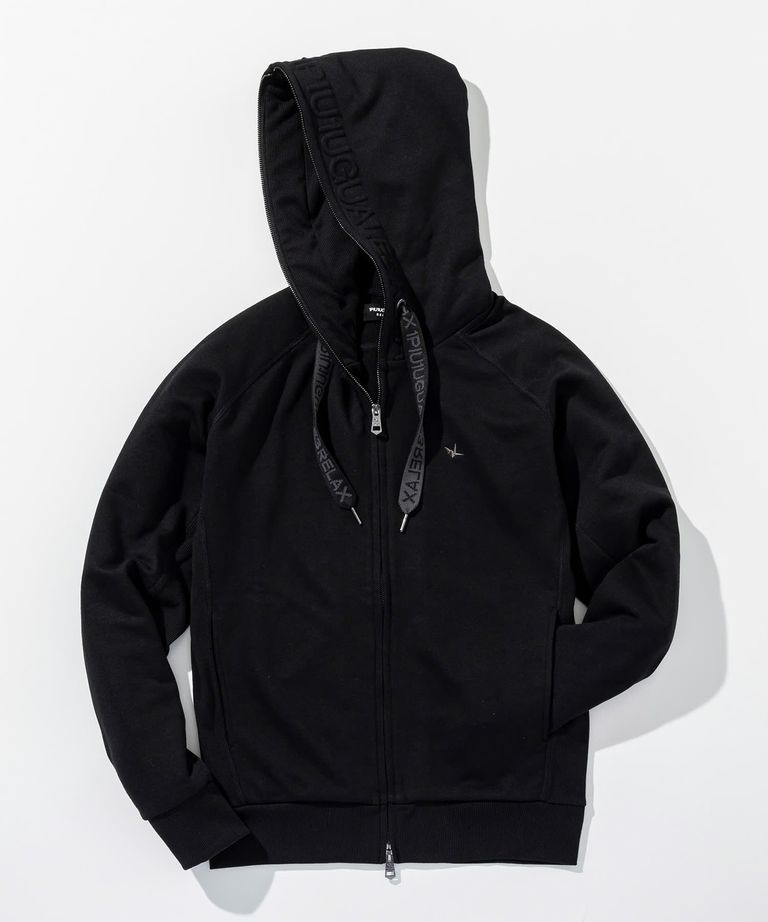 HOOD EMBOSSED LOGO HOODIE / エンボスロゴ ジップパーカー / ブラック【USO-26083】