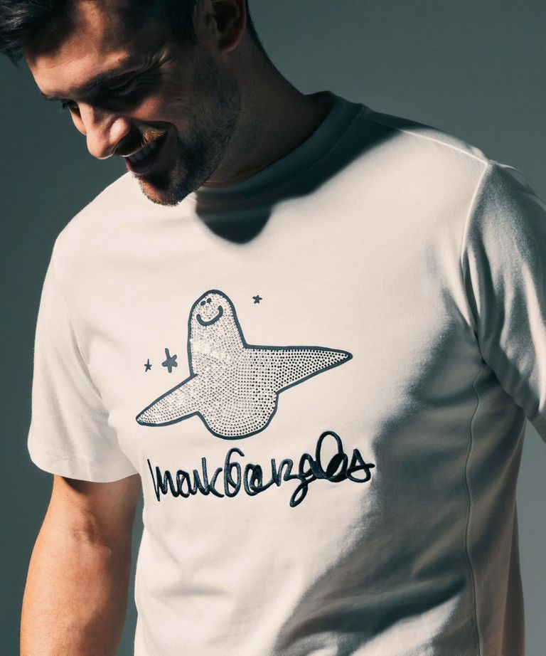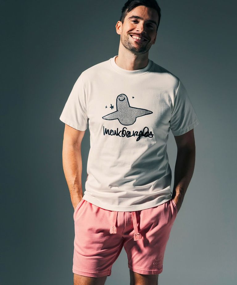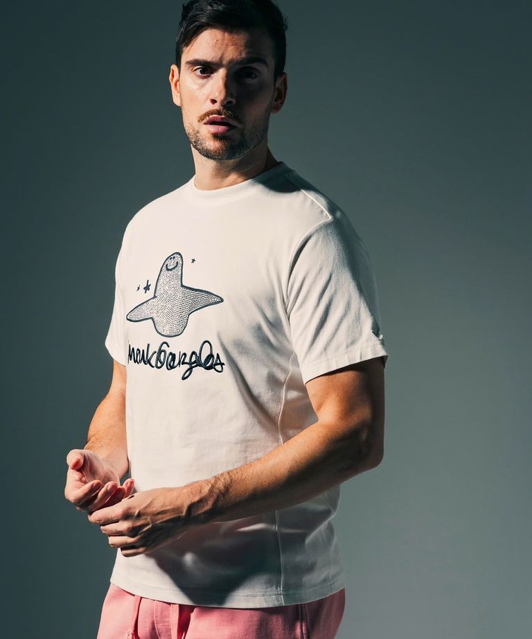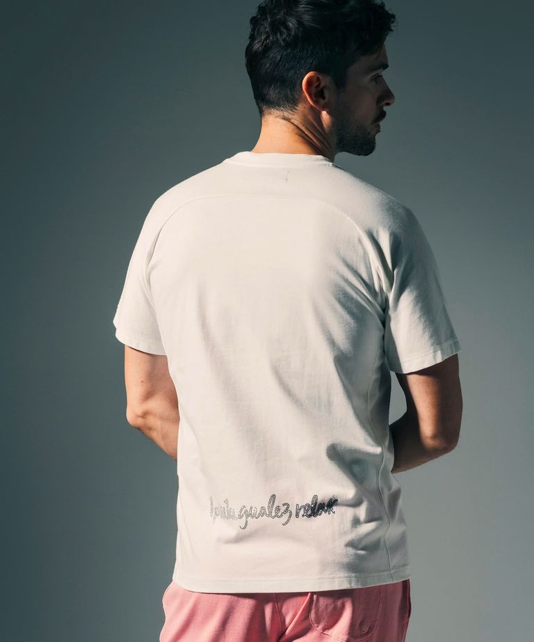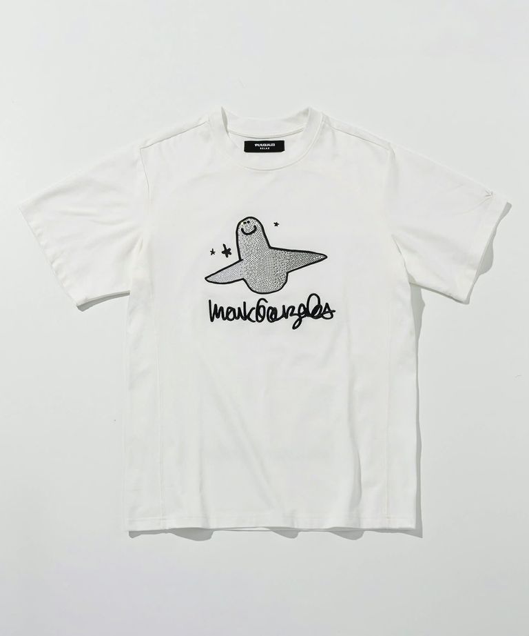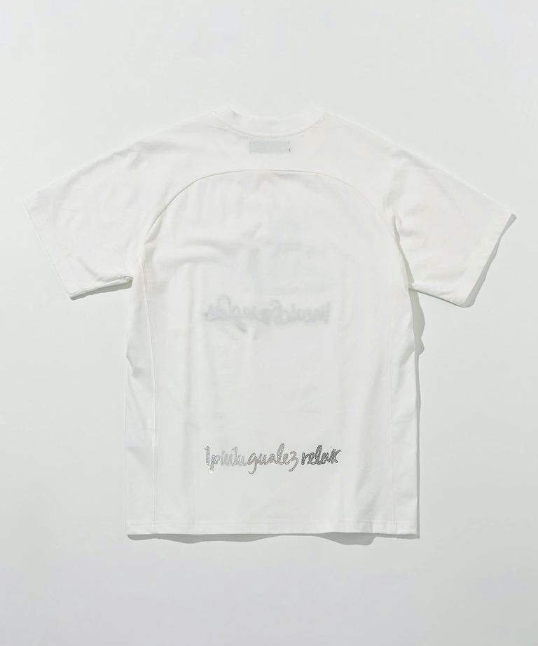 1PIU1UGUALE3 RELAX × Mark Gonzales / グラデーションラインストーン半袖Tシャツ / ホワイト【UST-26015】