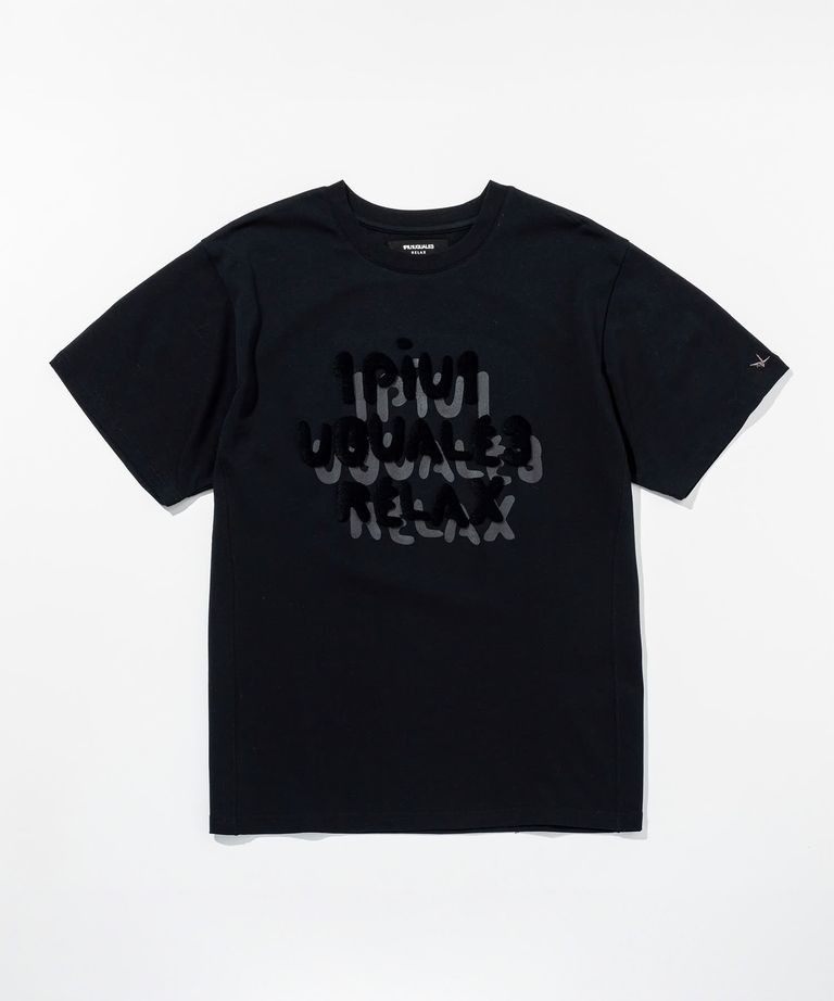 丸みのある手書き風ロゴに起毛刺繍を重ねた半袖カットソー。