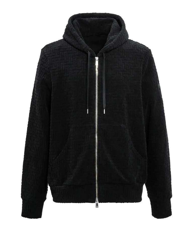 モノグラムパターンをジャカードで表現したパイル素材のパーカー。