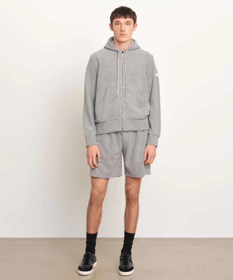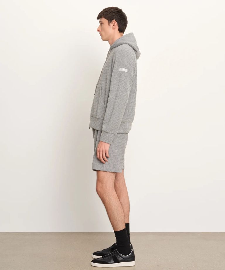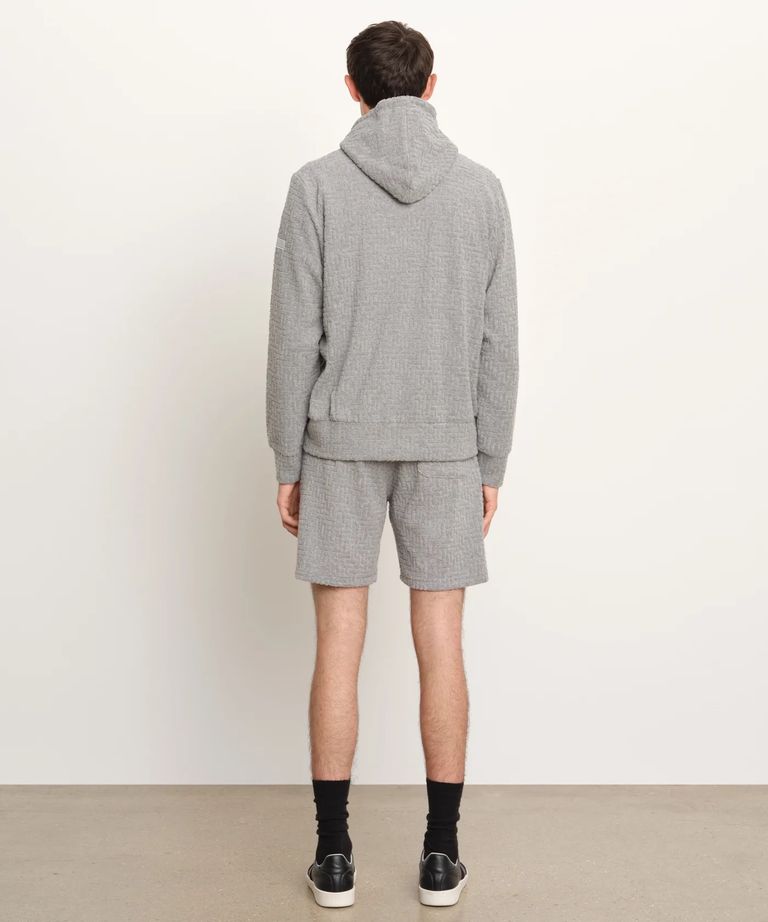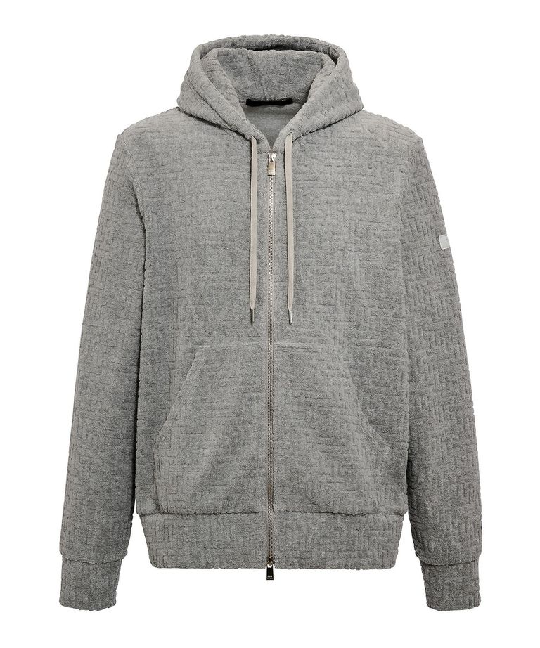 モノグラムパターンをジャカードで表現したパイル素材のパーカー。