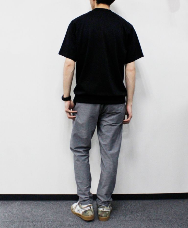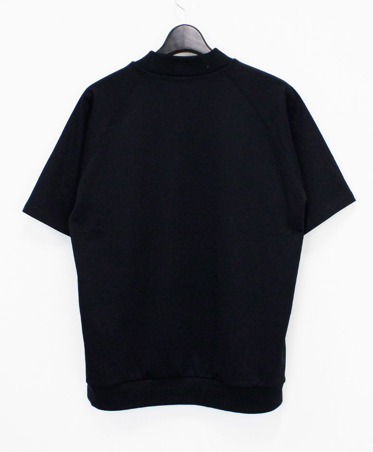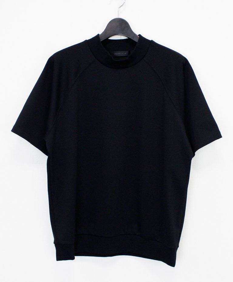 緩めのラグラン袖、低めのモックネックのハーフスリーブモデル。