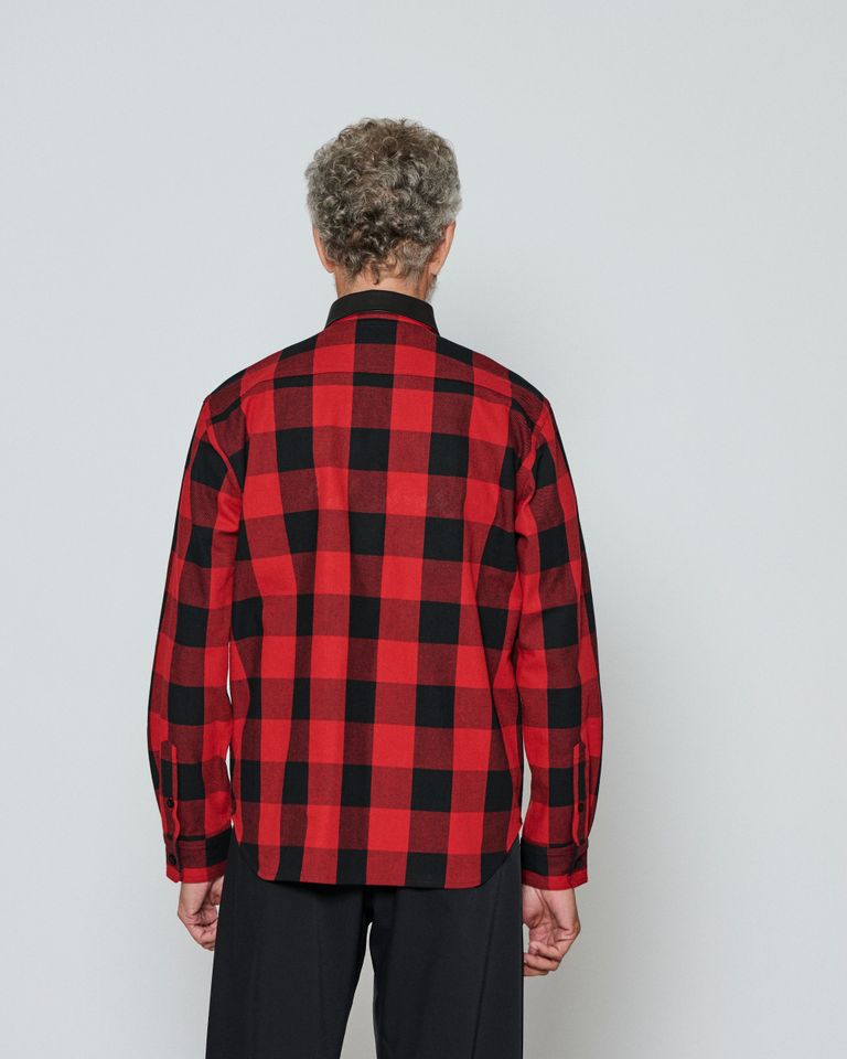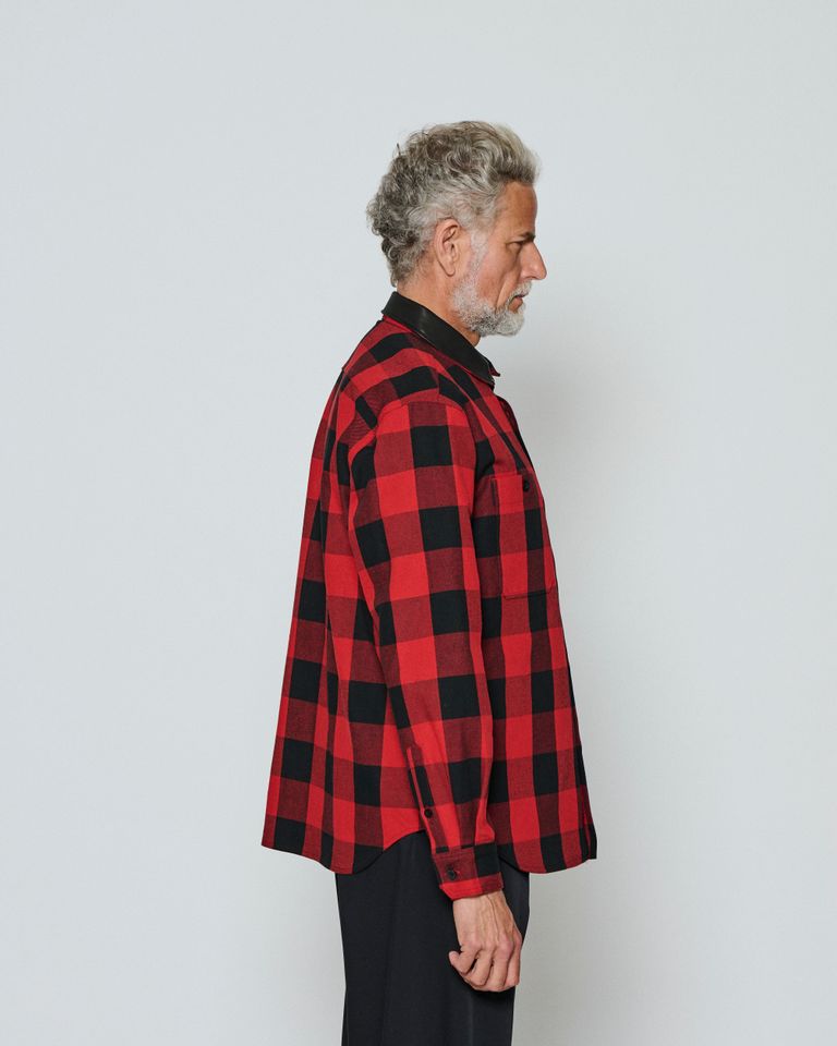 ☆先行予約☆/ レザーカラーチェックシャツ / Leather Collar Check Shirts / RED CHECK 【SH2603】